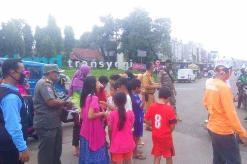 Kecamatan Cileungsi membagikan 3000 masker ke setiap pengendara di jalur masuk Perumahan Metland Transyogi.