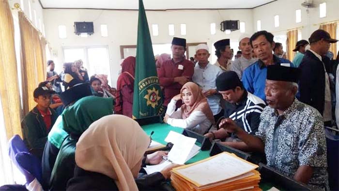Harian Sederhana, Bogor – Harapan warga Kecamatan Rumpin, Kabupaten Bogor untuk memiliki kepastian status pernikahan langsung direspon oleh Kepala Kantor Urusan Agama (KUA) Kecamatan Rumpin dengan menggelar isbat nikah bagi 62 pasangan. Sebanyak 62 pasangan yang sudah berumur antara 30-65 tahunan ini terlihat berseri-seri sesudah melaksanakan ijab qabul yang disaksikan petugas dari Pengadilan Agama Cibinong. Kegiatan itu berlangsung di Aula Kantor Kecamatan Rumpin.