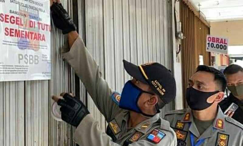 Pada giat yang dipimpin langsung Kasat Pol PP Kota Bogor Agustiansyah, petugas melakukan penyegelan di beberapa pertokoan yang dianggap rawan kerumunan orang, salah satunya di kawasan PGB, Jalan Merdeka, Kecamatan Bogor Tengah.