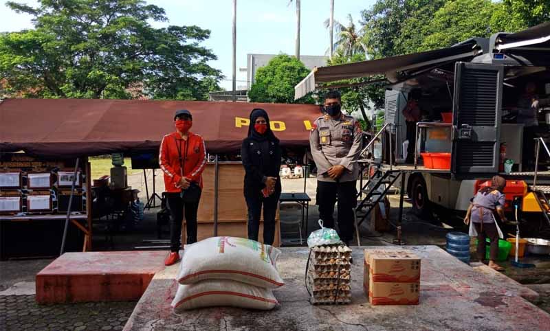 Harian Sederhana, Depok – Tokoh Perempuan Kota Depok, Hj. Afifah Alia bersama anggota DPRD Kota Depok, Veronica Wiwin menyerahkan bantuan sembako ke Dapur Umum Brimob di Kelurahan Mekarsari, Kecamatan Cimanggis, Sabtu (18/4/2020).