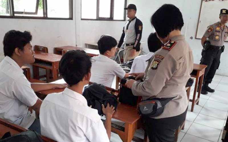 Polisi juga memeriksa bawaan siswa seperti tas serta benda lainnya yang mencurigakan.