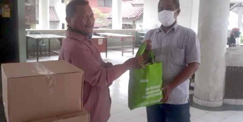 Budi Santoso menyerahkan bantuan berupa Hand Sanitizer dan cairan Disinfektan ke PWI.