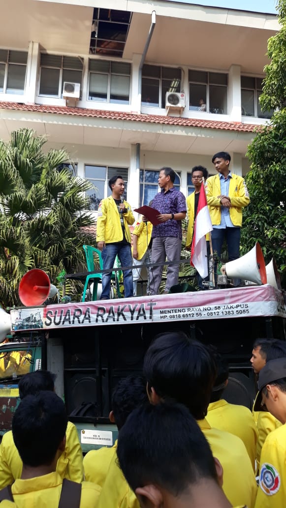 BEM PNJ yang melakukan aksi demonstrasi di halaman kampus PNJ, Kamis (11/7/2019).
