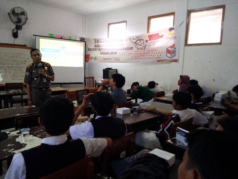 Mereka merupakan siwa kelas 11 dan 12 yang usianya sudah di atas 17 tahun, bahkan sudah ada yang usianya 18 tahun, sehingga sudah terdaftart sebagai pemilih. Dalam sosialsasi ini, apararatur pemerintah kecamatan hanya memberikan pemahaman tentang tata cara pencoblosan, dan ajakan kepada ssiwa untuk ikut menyukseskan pesta demokrasi sehingga Pemilu sukses tanpa ekses.