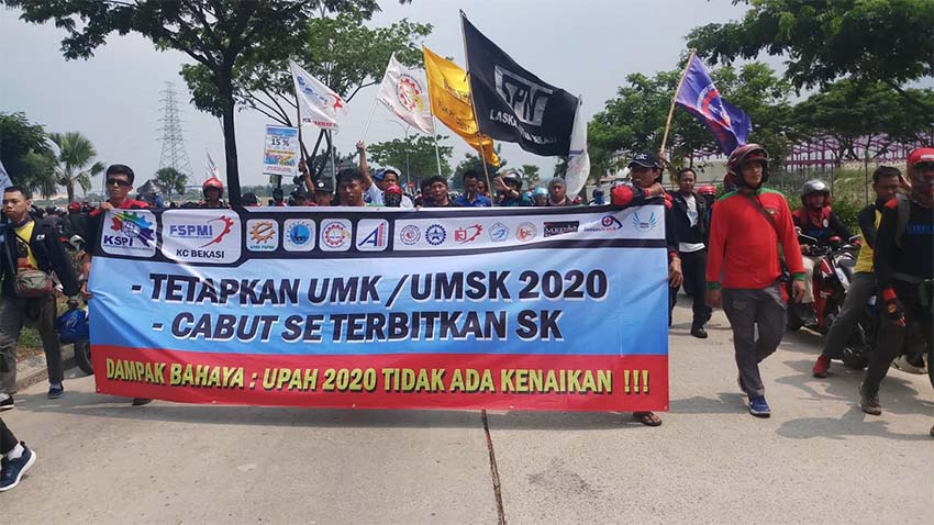 Harian Sederhana, Cikarang Pusat – Keputusan Gubernur Jawa Barat, Ridwan Kamil menyetujui kenaikan Upah Minimum Kabupaten/Kota (UMK) dengan mengeluarkan Surat Edaran (SE) Nomor 561/75/Yanbangsos tentang Pelaksanaan Upah Minimum Kabupaten/Kota di Jawa Barat Tahun 2020, tampaknya membuat sejumlah elemen buruh tidak puas.