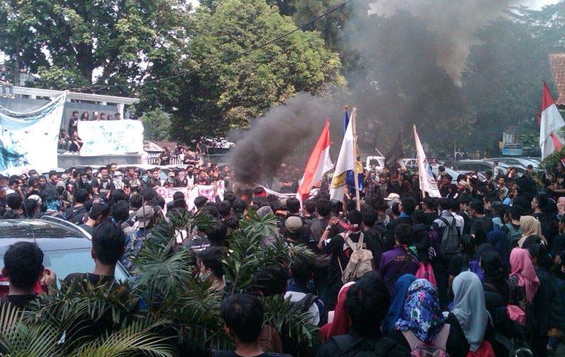 “Petugas langsung melakukan represif dengan memukuli para mahasiswa menggunakan tongkat, padahal mahasiswa akan pulang ke kampus,” ujar Presma Pakuan Ramdani.