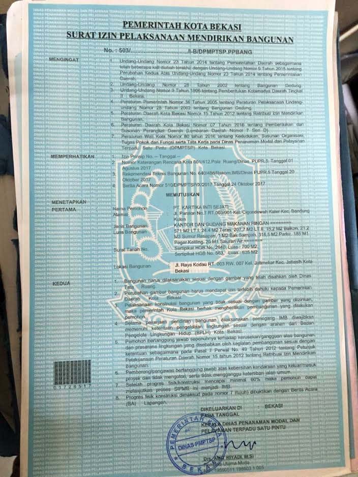 Hal itu dikatakannya menyusul terteranya tanda tangan Amit Riyadi pada SPIMB gudang, yang berlokasi di Jalan Raya Kodau, Kelurahan Jatirahayu, Kecamatan Pondok Melati, Kota Bekasi tanpa tertera tanggal, bulan dan tahun.