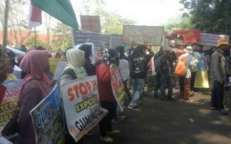 Saat orasi warga mendesak, para wakil rakyat bisa menghentikan aktivas peledakan di lokasi pertambangan karena sudah menggangu lingkungan.