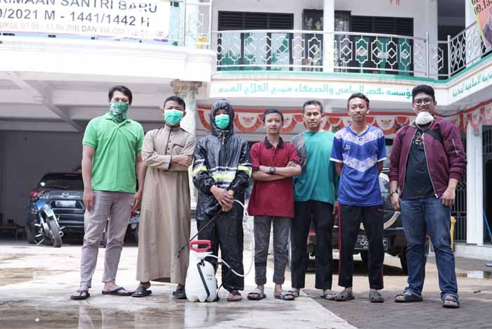 Kegiatan bertajuk HIPMI Peduli #lawancovid19 di Depok dengan melakukan penyemprotan disinfektan di sejumlah tempat, salah satunya adalah di Pondok Pesantren Al-Murozza, di Kelurahan Sukamaju Baru, Kecamatan Tapos, Depok, Selasa, (24/3/2020)