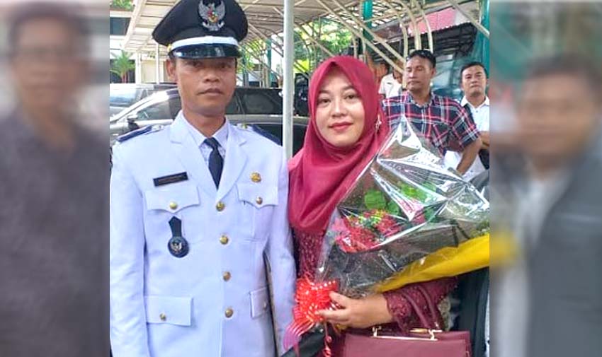 Kades Sukaraja, Dede Iskandar (45) bersama istri.