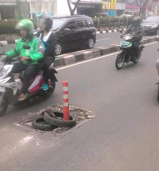 Harian Sederhana, Depok – Lubang kabel optik yang berada di Jalan Margonda, Kelurahan Kemirimuka, Kecamatan Beji kerap menyebabkan kecelakaan lalu-lintas di kawasan tersebut. Karenanya, untuk menghindari lagi terjadinya kecelakaan, warga memasang ban bekas di lokasi jalan berlubang.