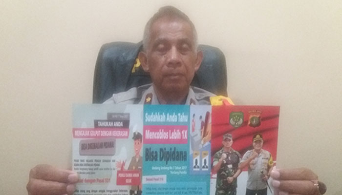 “Tiap anggota Bhabinkamtibmas kami berkewajiban membagikan brosur ke pusat keramaian, Samsat, agent perjalanan, travel, tempat pelayanan masyarakat dan ke pengendara motor juga,” ujarnya.