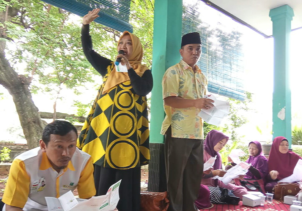 Selain berkomunikasi dengan warga, caleg Golkar untuk DPRD Kota Depok Juanah Sarmili memberikan edukasi tata cara memilih dan mencoblos yang benar kepada ratusan masyarakat yang hadir.