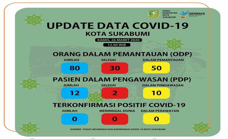 Dikatakan Juru Bicara Media Centre penangan dan Pencegahan Covid – 19 Kota Sukabumi dr Wahyu Hendrayana, Kamis (26/03/2020) melalui Group Watsaaps Covid -19 Kota Sukabumi.