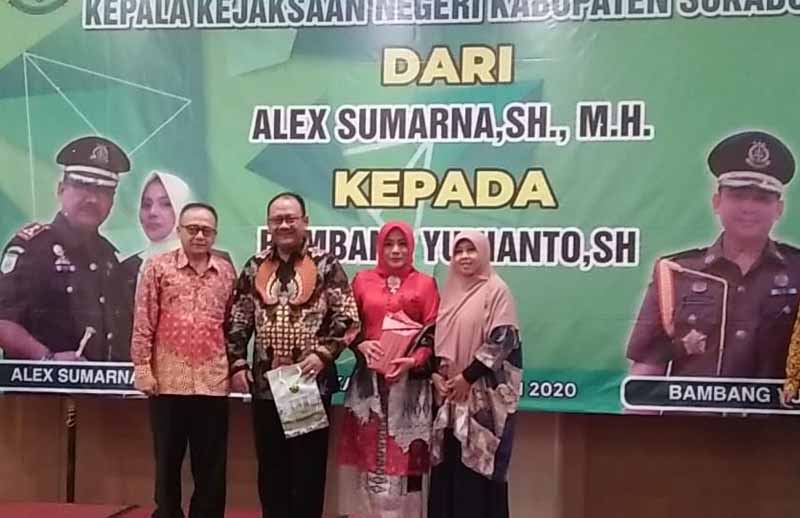 Harian Sederhana, Sukabumi – Kejaksaan Negeri Kabupaten Sukabumi, menggelar kegiatan pisah sambut Kepala Kejaksaan Negeri Alex Sumarna, digantikan pejabat baru Bambang Yunianto. Kegiatan Pisah sambut, dilaksanakan disalah satu hotel di Jalan Siliwangi, Kota Sukabumi. Rabu, (29/1).