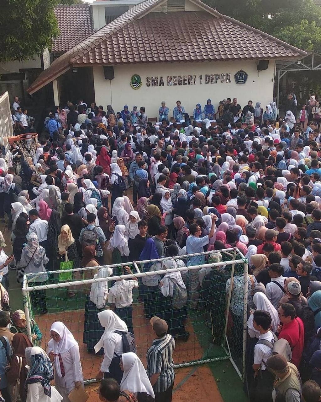 “Iya, tadi pagi penuh sesak saya sampai kegencet di depan gerbang. Untung ditolong penjaga dan diarahkan masuk kesini,” tutur Yuke saat ditemui di SMAN 1 Depok.