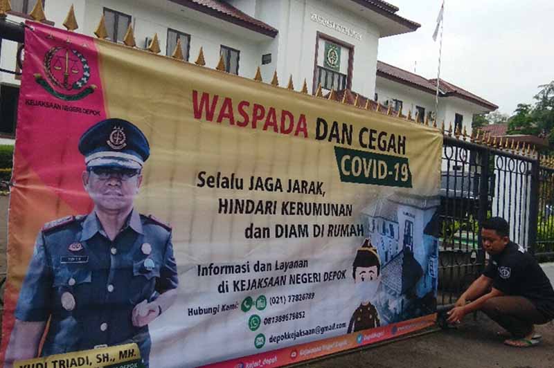 Kajari Depok Yudi Triyadi mengatakan, telah memerintahkan jajarannya untuk melakukan imbauan kepada masyarakat untuk selalu jaga jarak, hindari kerumunan dan tetap diam di rumah salah satunya dengan memasang spanduk imbauan di tempat keramaian.