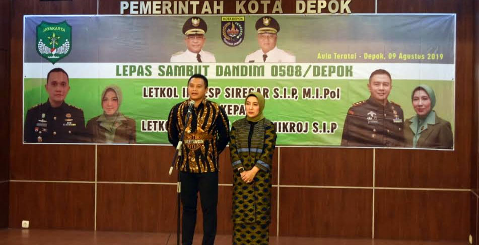 “Dengan kerendahan hati, mohon kiranya bapak ibu berkenan menerima kami sekeluarga di Depok,” kata Dandim 0508/Depok yang baru, Letkol Inf Agus Isrok Miroj saat acara Lepas Sambut Dandim 0508/Depok di Balai Kota Depok, Jumat (09/08/2019).