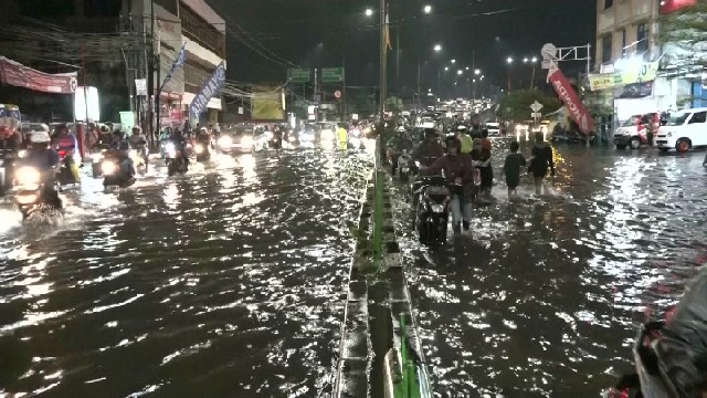 Suasana Kota Depok saat banjir. (FOTO : Zahrul/Harian Sederhana)