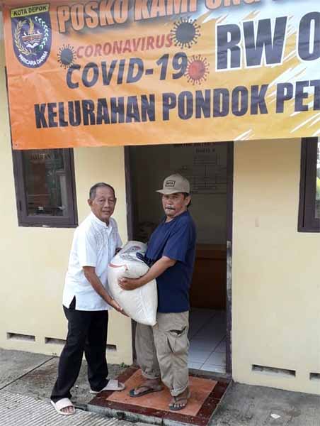 Ketua RW 06 Martin Badri menerma bantuan beras untuk disalurkan ke warga.