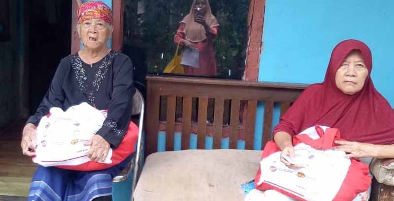 Dua lansia di RW 03 Keluraha Bedahan memperoleh sembako.