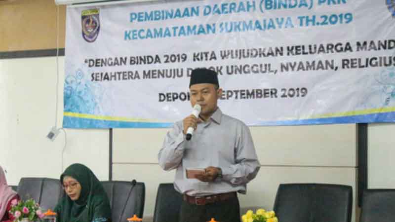 Camat Sukmajaya, Tito Ahmad Riyadi saat memberikan sambutan pada acara Binda.