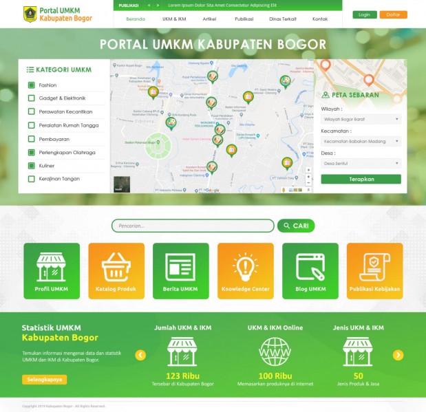 Menurut Kasi Pelayanan Tata Kelola E-Goverment, Christian P Messakh, jumlah industri masyarakat Kabupaten Bogor diperkirakan lebih dari 10.000 unit. Hingga saat ini, Pekab Bogor memastikan terdapat 2000 unit UMKM yang telah didaftarkan di web khusus UMKM.