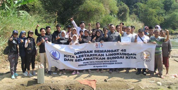 Harian Sederhana, Bogor – PDAM Tirta Pakuan Kota Bogor bekerja sama dengan Pergerakan Mahasiswa Bogor (PMB) mengadakan program penyuluhan serta bersih-bersih Daerah Aliran Sungai Cisadane di Kampung Maseng RT 02 RW 08 Kecamatan Caringin, Kabupaten Bogor. Kamis (8/8).