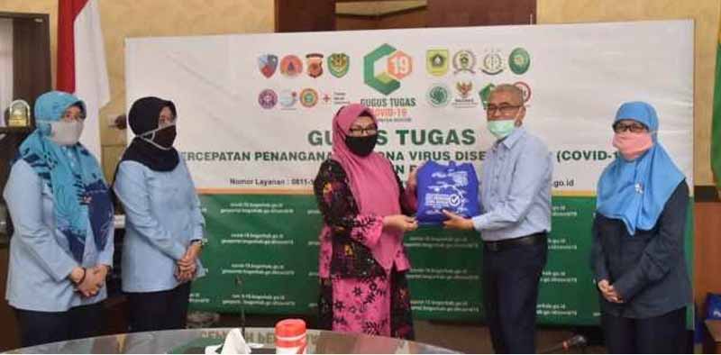 Pemberian logistik kepada wanita yang juga Kepala Bappedalitbang dilakukan di Pendopo Bupati Bogor, Cibinong, Bogor, Selasa (12/5/2020).