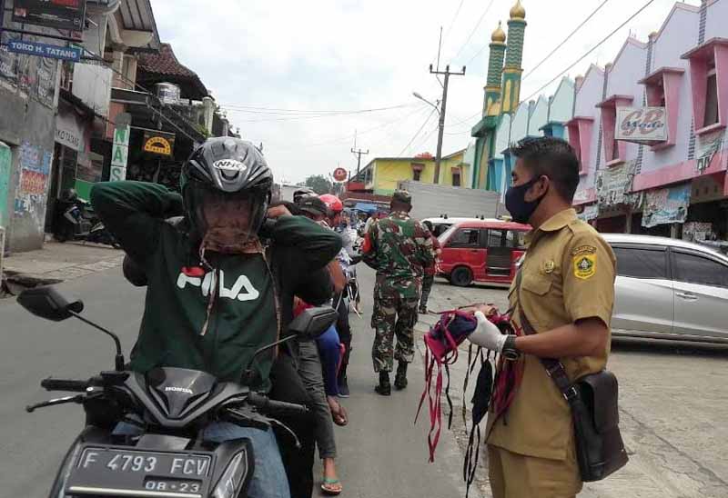 Selain penyemprotan disinfrktan, Pemdes Cijeruk juga melakukan aksi dengan memberikan masker secara gratis kepada pengendara yang melintas, tidak lupa para pengguna jalan.