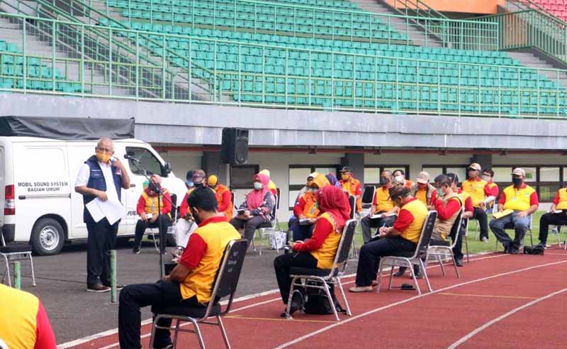 Harian Sederhana, Bekasi – Wali Kota Bekasi Rahmat Effendi memimpin rapat koordinasi terkait dengan pemberlakuannya PSBB tahap III di Stadion Patriot Chandrabaga Kamis (13/05). Hadir dalam kesempatan itu, Wakil Wali Kota Bekasi Tri Adhianto, Sekda Kota Bekasi Reny Hendrawati, Kapolres Metro Bekasi Kota Kombespol Wijonarko dan Danramil 01.