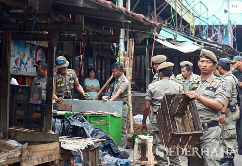 Harian Sederhana, Bogor – Ratusan lapak pedagang buah dan sayuran yang berada di kawasan Jalan Roda, Babakan Pasar, Bogor Tengah, Kota Bogor ditertibkan tim gabungan, Rabu (8/1) pagi.