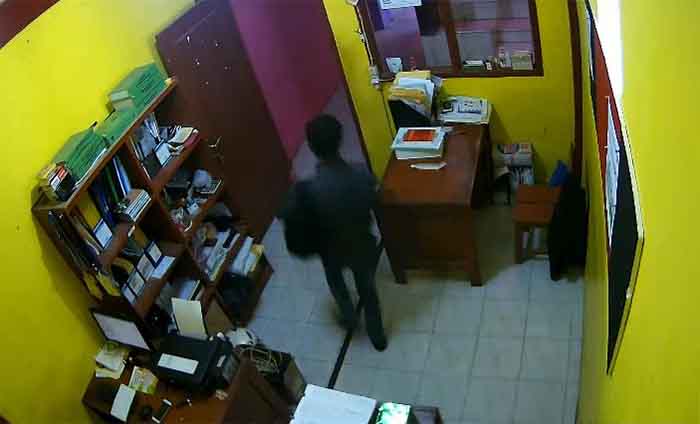 Pembina Yayasan SMK IT Napala, H. Ahmat Baeti Firdaus menjelaskan bahwa, aksi pelaku pencurian pria tak dikenal disiang bolong itu terekam oleh CCTV.