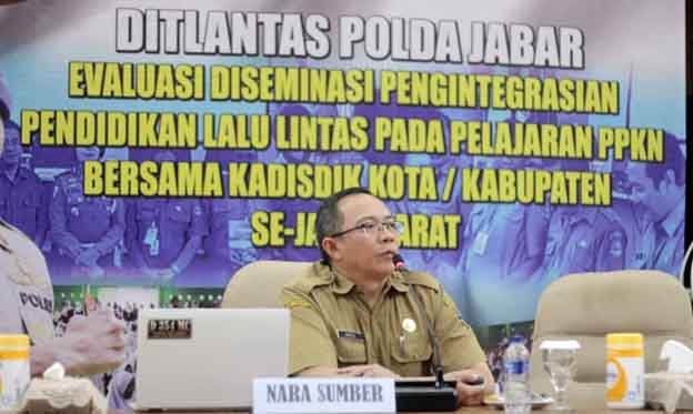 Hal tersebut disampaikan Tim Pengembang Kurikulum Dinas Pendidikan (Disdik) Provinsi Jawa Barat, Arief Achmad saat memberikan materi pada kegiatan yang diadakan Ditlantas Polda Jabar mengenai “Evaluasi Diseminasi Pengintegrasian Pendidikan Lalu Lintas pada Pelajaran PPKN Bersama Kadisdik Kota/Kabupaten Se-Jawa Barat” di Aula Bapenda Jabar, Jalan Soekarno Hatta, Kota Bandung, Selasa (20/8/2019).