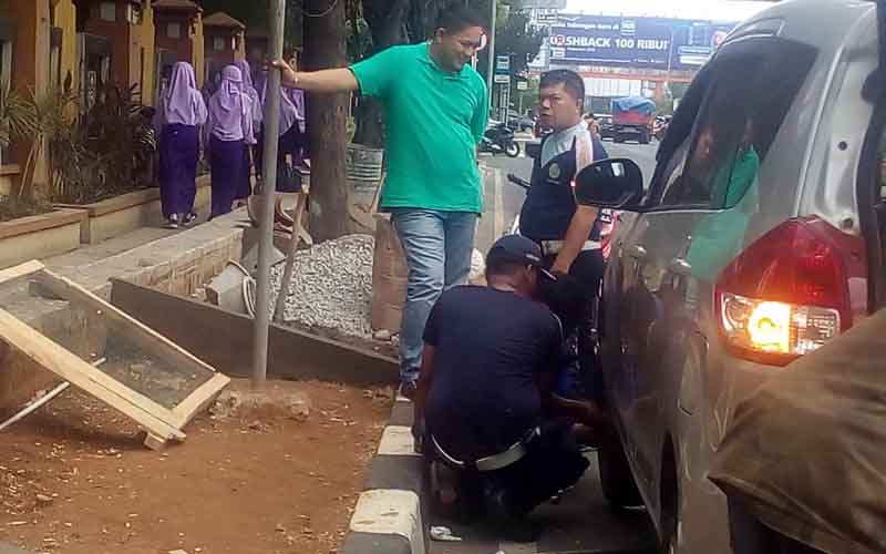 Di tempat itu, petugas yang biasa berdiam di depan Stadion Patriot Chandrabaga tersebut, tengah membantu mengganti salah satu ban Suzuki Ertiga yang dikendarai Asep warga Perumnas 3, Aren Jaya, Bekasi Timur.
