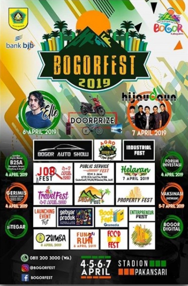 “Semua warga masyarakat Kabupaten Bogor ayo kita rame-rame datang ke acara Bogor Fest 2019, berbagai macam both pameran hadir pada acara ini, kuliner, pameran otomotif, music performace dari artis-artis ibu kota, fetival kopi, aerobic dan zumba dan masih banyak kegiatan lainnya, ,” ujar Ade Yasin.