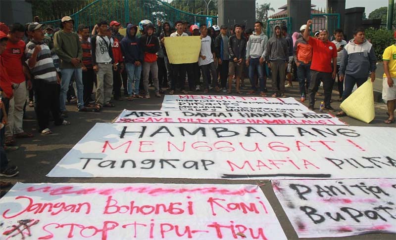 “Kami sebut ini penzoliman oleh panitia kepada warga, maka kami datang kesini menuntut kepada Bupati untuk turun tangan. Jangan sampai kongkalikong ini terus merusak pesta demokrasi masyarakat, karena kalau ini dibiarkan bisa terjadi benturan atau gesekan yang hebat di masyarakat,” kata Wildan.