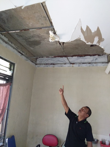 Tidak hanya itu, lanjutnya, plafon ruang PKK, ruang lurah dan ruang sekretaris kelurahan berpotensi ambruk karena gypsum bahan untuk langit-langit menjadi cembung dan penuh bintik-bintik bekas tetesan air hujan.