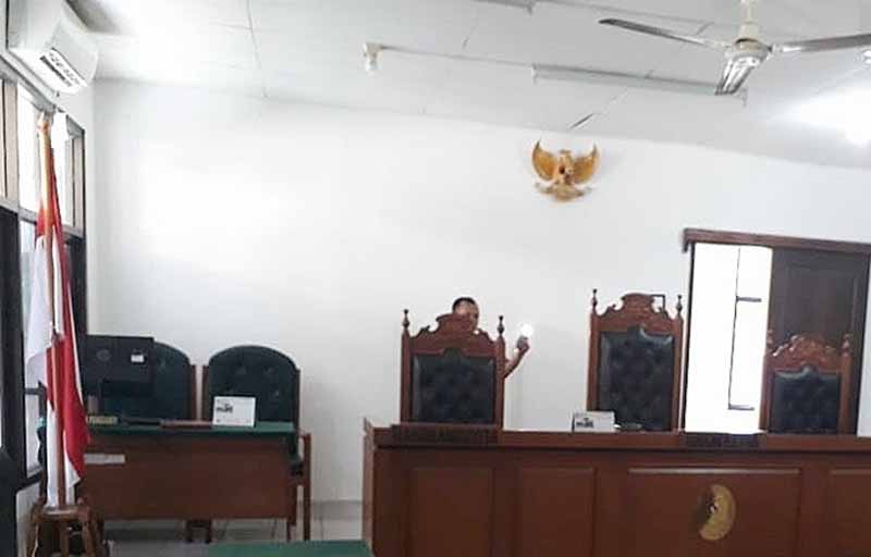 Suasana ruang sidang utama PN Depok terlihat sepi, Senin (23/3).