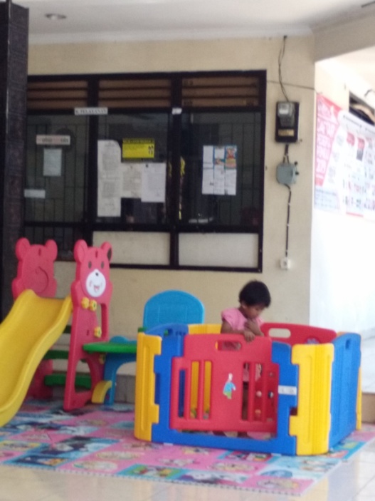 Hal ini dilakukan orang tua, lantaran minimnya sarana dan prasarana bermain di lingkungan mereka, sehingga pojok bermain dijadikan tempat bermain bagi anak-anak mereka.