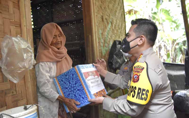 Salah satu pemberian sembako dilakukan secara simbolis kepada seorang ibu lansia yang tinggal di Kampung Pisang RT 02, RW 06 Kelurahan Karadenan, bernama Mimi.
