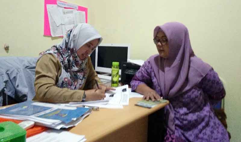 Wulan Ginanjar, Sekretaris Kelurahan Curug sedang diskusi dengan kader posyandu untuk menyosialisasikan RW Ramah Anak.
