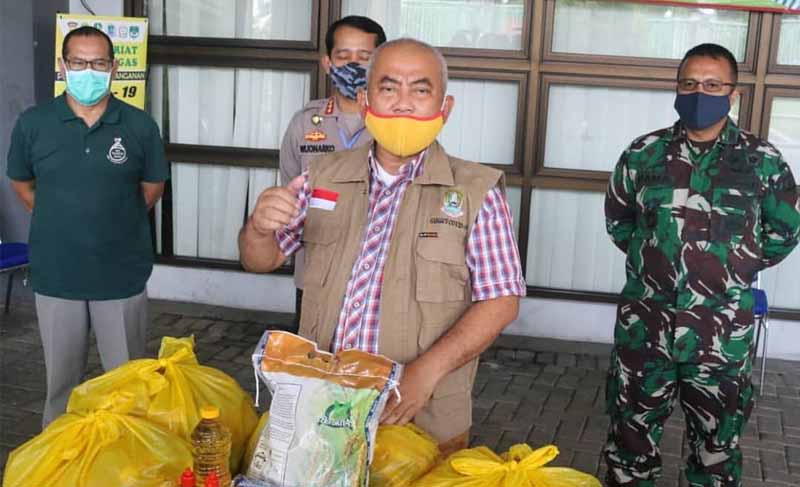 Wali Kota Bekasi, Rahmat Effendi salurkan bantuan sembako.