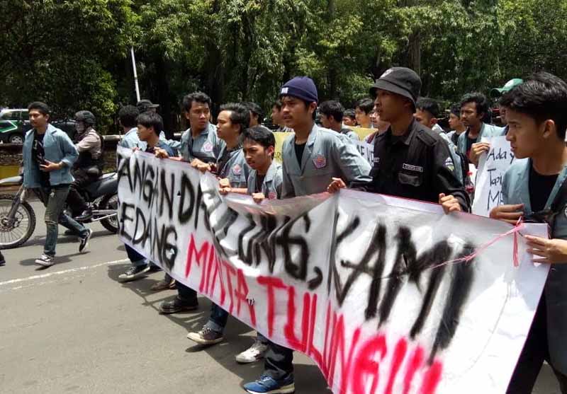 Untuk mengeluarkan pendapat, ribuan mahasiswa itu melakukan aksi demo di kampus. Setelah berjam-jam aksi, akhirnya pihak kampus mau menerima mahasiswa untuk diskusi terbuka.