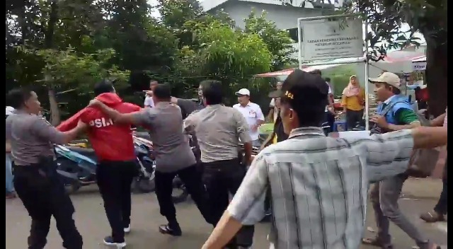 Kericuhan saat rekapitulasi suara pemilihan umum 2019 di GOR Perumahan BPK, Kelurahan Gandul, Kecamatan Cinere, Depok. (FOTO : Harian Sederhana)