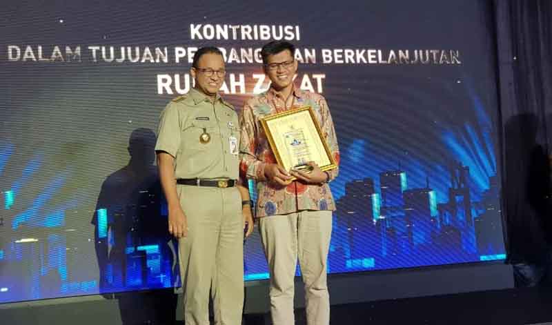 Chief Marketing Officer Rumah Zakat, Irvan Nugraha, menerima penghargaan ini langsung dari Gubernur DKI Jakarta, Anies Baswedan.