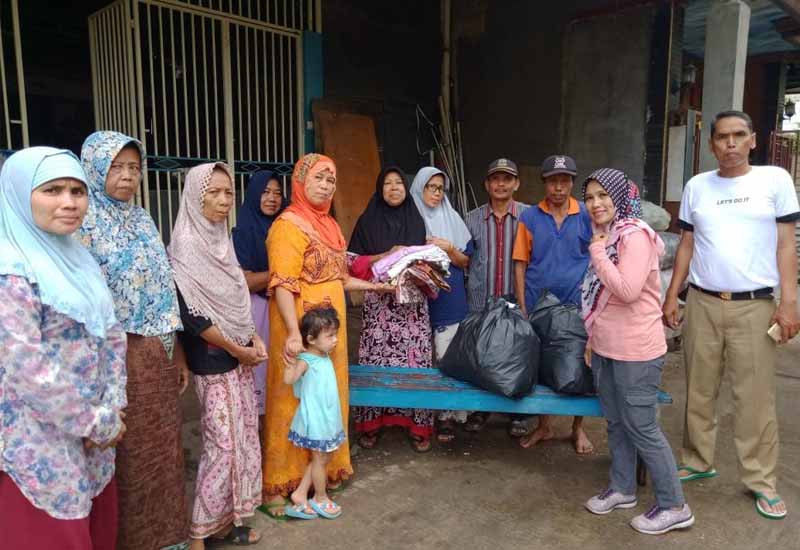Sedang kebutuhan sandang, kita memberikan terlebih dahulu kemudian bantuan yang kita punya dahulu yaitu, mie instan, air mineral dan baju layak pakai juga peralatan mandi.