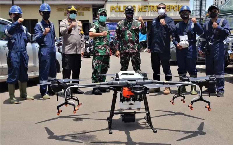 Kapolrestro Depok Kombes Pol Azis Andriansyah didampingi Dandim 0508/Depok Kolonel Inf Agus Isrok Mikroj, Rabu (1/4/) sore mengatakan yang membedakan kali ini adalah teknologi yang digunakan karena penyemprotan dilakukan menggunakan drone.