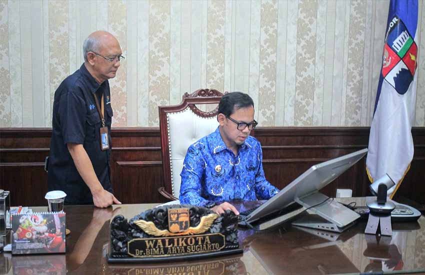 Didampingi Kepala Badan Pusat Statistik (BPS) Kota Bogor Bambang Ananto Cahyono, Bima Arya tampak menginput sendiri data pribadi dan keluarganya melalui perangkat komputer di meja kerjanya.