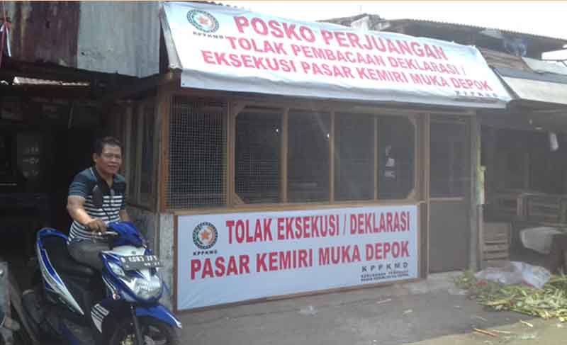 Pemasangan spanduk dilatarbelakangi dengan adanya surat edaran yang berisi kalau pedagang memberikan dukungan eksekusi oleh Pengadilan Negeri Kota Depok. (*)